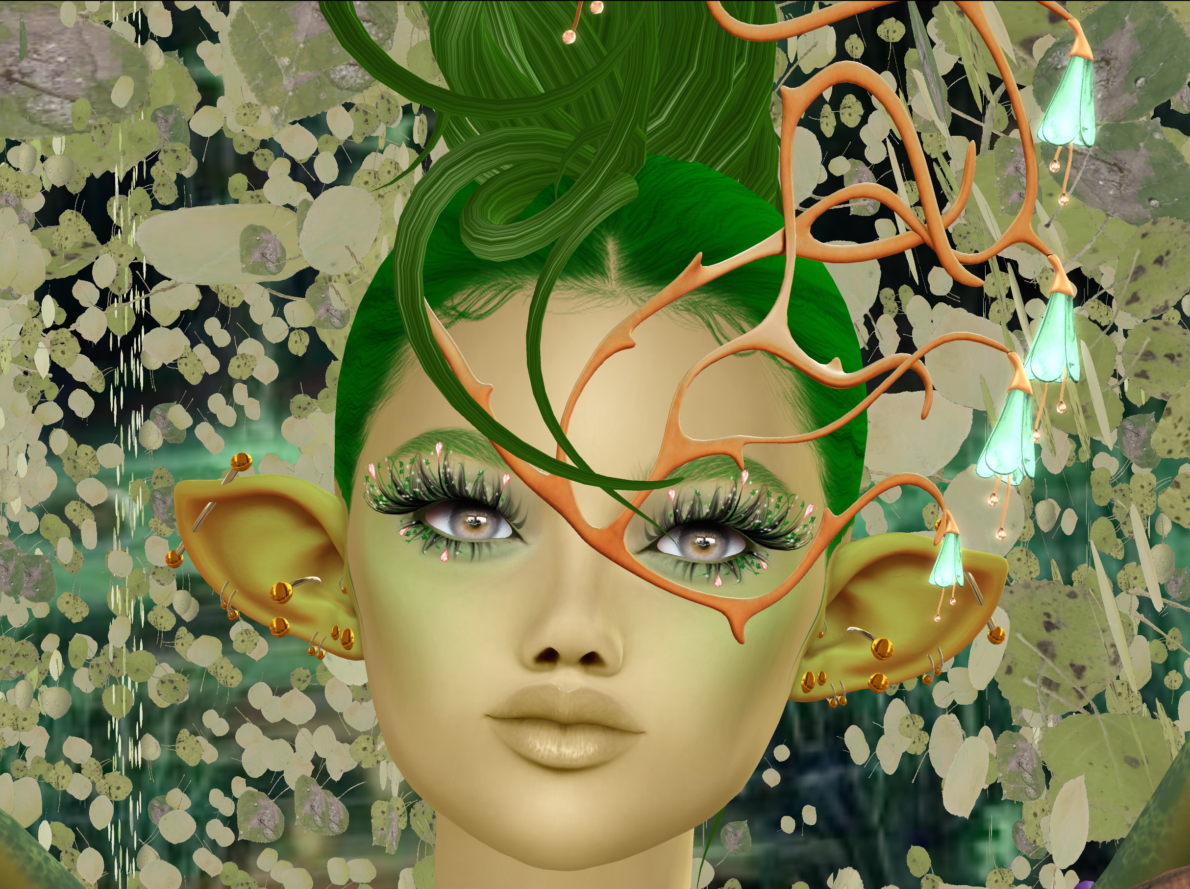 LeLUTKA hairbase, brows and elf ears are all tinted (I suck at such things, which is why they’re all different shades of green, but I like them anyway)!