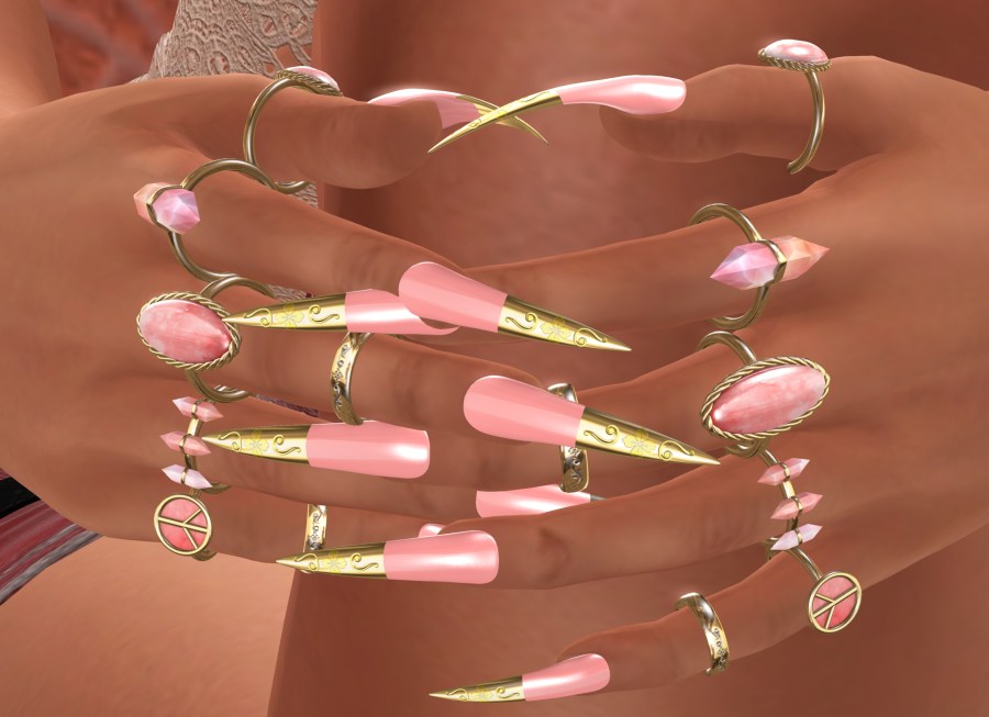 And here’s a closeup of RAWR!s nails and rings (I know…I clipped one of the fingers but I’m too lazy to fix it) ❤