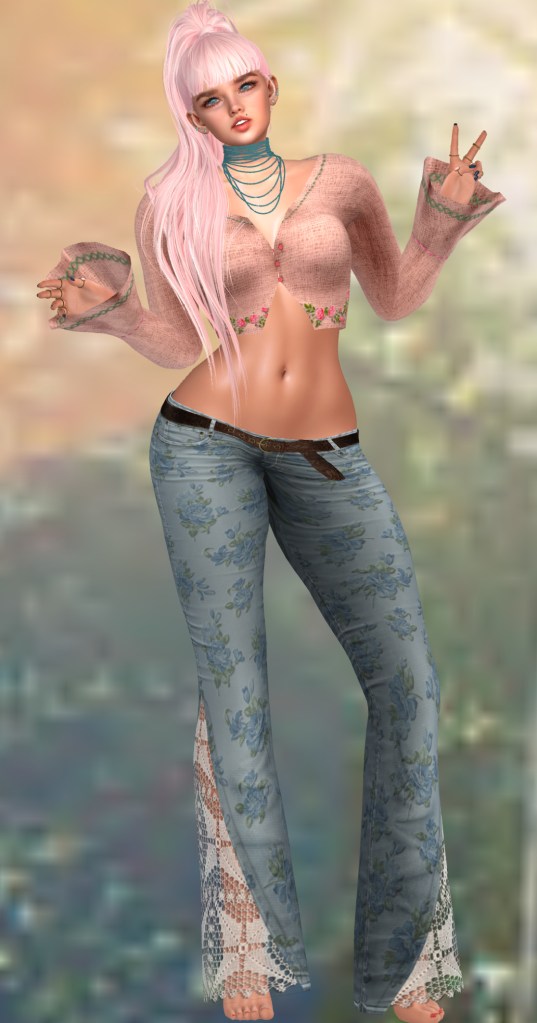 Graffitiwear – Far Out Peasant Blouse, Jeans and Belt on the South sim @ Vintage Fair 2021