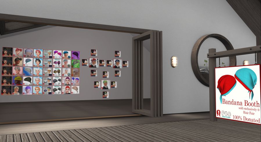 Tomorrow is the last day of Hair Fair 2021 and has traditionally been designated Bandana Day. Bandana Day started in 2007, and it’s a day everyone from all over SL is encouraged to remove their hair and wear bandanas decorated by Residents (not just hair creators!) grid wide. You can purchase a bandana at the Hair Fair, there is a Bandana Booth on most…just look for the sign on the boardwalk. Each bandana is 50L…..all of which goes to Wigs for Kids. Go get you one (or 2 or 3) and lets see you wearing it around SL tomorrow! ❤