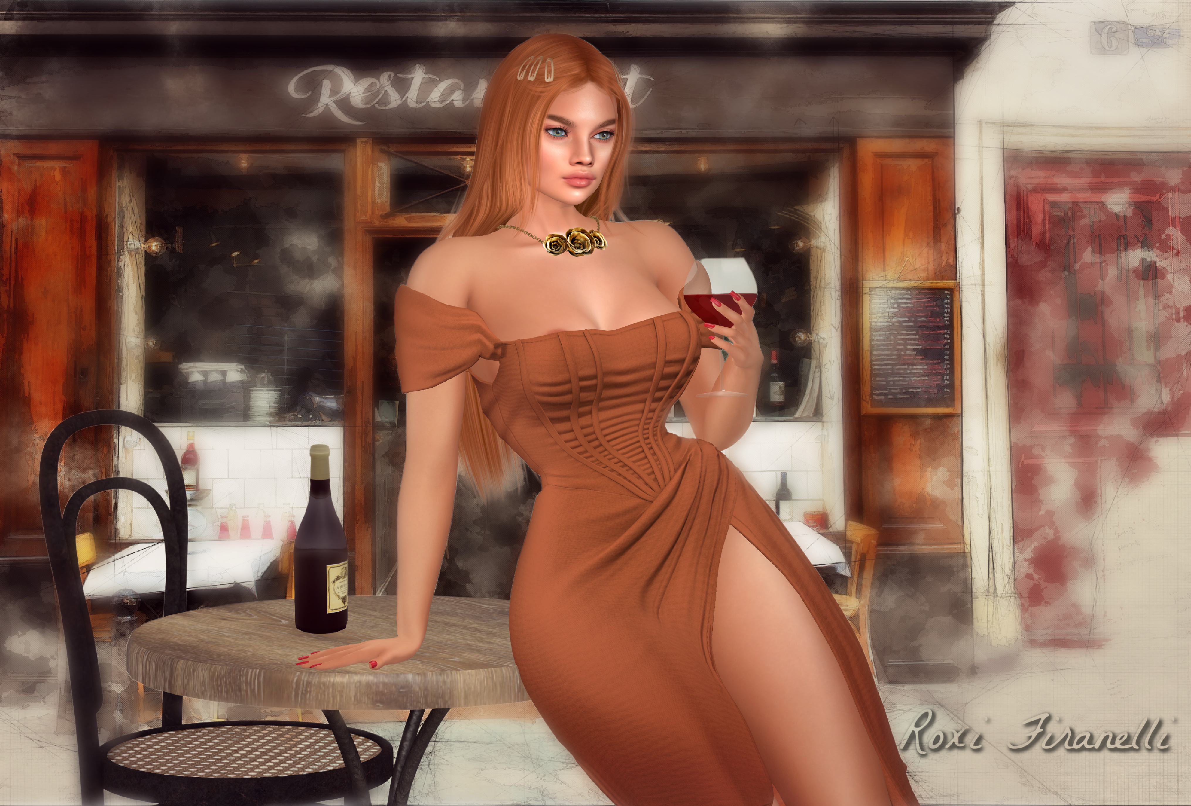 Le Poppycock La Parisienne Par excellence (pose, wine, table, chair)