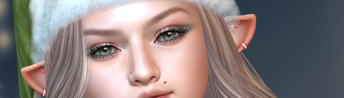 I’m starting the 1st day with the base…LeLUTKA’s free gift, Noel. There is also a guy head, Kris (and lots of guy skins this year!). Noel comes with all the bells and whistles we’re used to, including 4 (rather light-ish) skin tones….blush, porcelain, rose kiss and snow…the rose kiss I have on is the darkest shade…so if you want to go with a snow elf…this is your chance! I have not edited the skin nor default shape…the only thing I did was put on the eyeshadow from WarPaint, eyes from Insol, and the glitter and piercings from the LeL package. Noel is just what you see…a fresh elfish look (you don’t have to wear the elf ears, but they look so perfect with this face!). There are 2 LeL holiday sims to grab the heads, don’t go to the main store! ❤