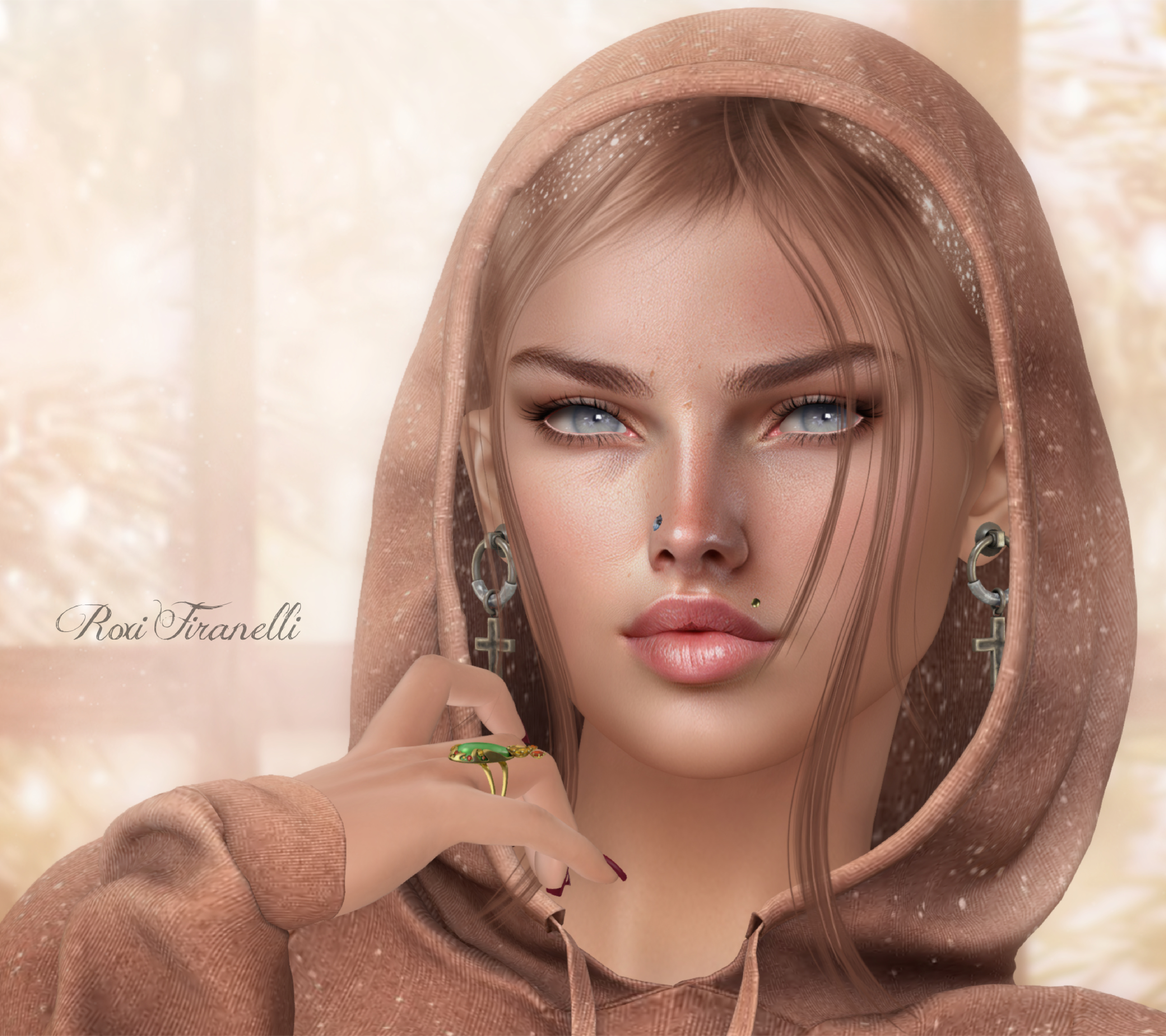 Not to be confused with LeLutka’s Camila skin! Camile is from Traditional Face, made for LeL’s Camila head for the 12 Days event and is super detailed. I’m wearing the Medium tone with the eyeshadow that comes with it. Also from the 12 Days collection this year were the eyes, hairbase and wisps, hoodie and earrings…win win! The event is officially over so most of the stores involved will probably be putting a price on their creations….but maybe if you pop around quick you can still catch them for free (not the heads though, LeL took those down lickity split at midnight).